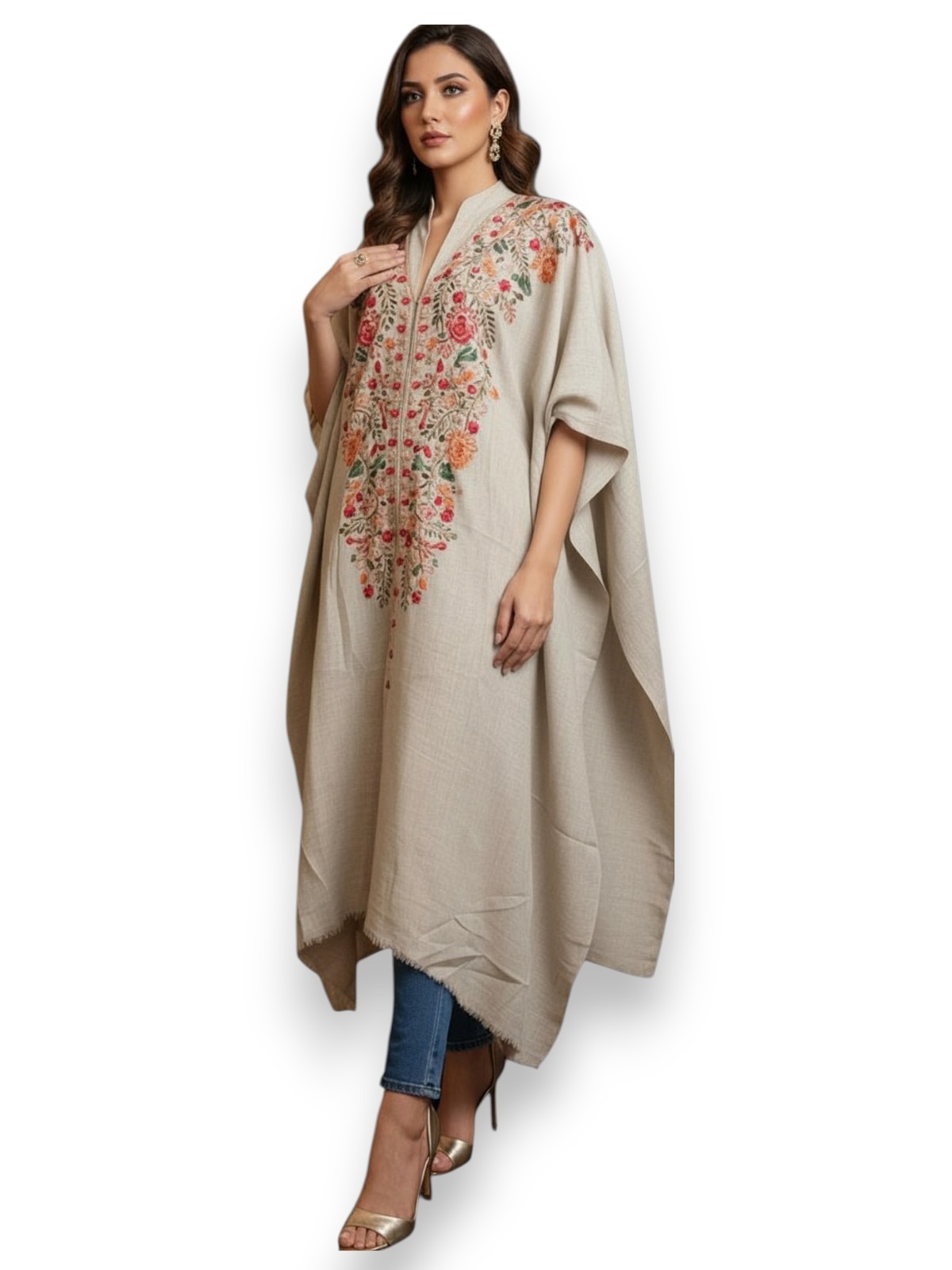 Soft pashmina fabric Gulabkar embroidery Free size